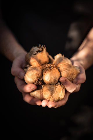 Handcrafted from organic Margaret River garlic, our Black Garlic Cloves are slowly aged at low heat and high humidity, unlocking a rich umami depth through the Maillard reaction. The result is soft, sweet-savoury cloves with notes of balsamic, tamarind and molasses. Each bulb is hand peeled and packed into 25g jars — perfect for sauces, marinades, grazing boards or enjoying straight from the jar.