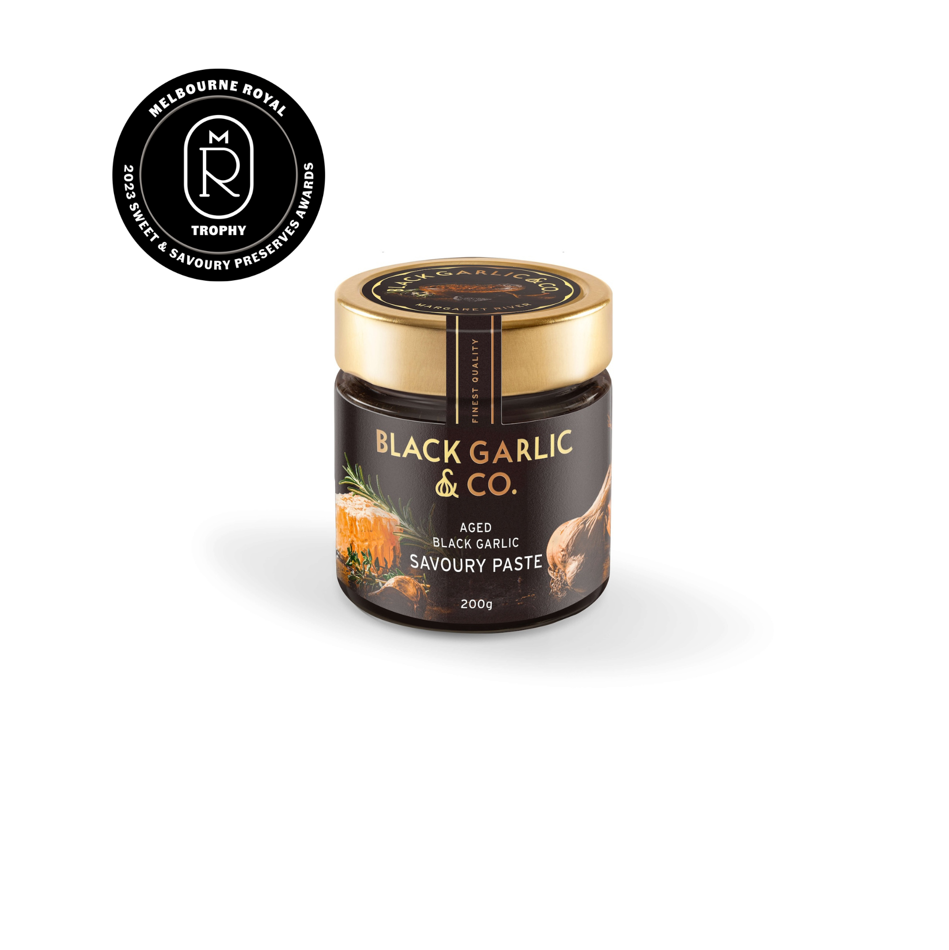 Discover Black Garlic & Co’s Aged Black Garlic Savoury Paste — a fusion of 14 ingredients including black garlic, caramelised onion, balsamic & Mediterranean spices. Perfect for marinades, dressings, stir-fries, slow cooking & as a gourmet relish. Shop online now.